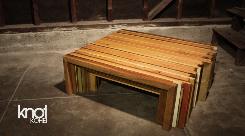 Translated from Japanese, Kohei literally means wide and flat. The Kohei is a table that utilizes reclaimed wood to create a relationship between natural result and human refinement. The varied sizes in wood and their deliberate placement create a smooth planar top and side surface. The result is a natural, uneven allure on the opposing surfaces of the table. A Study of beauty in perfect and imperfect objects. Dedicated to the late Kohei Ishihara.